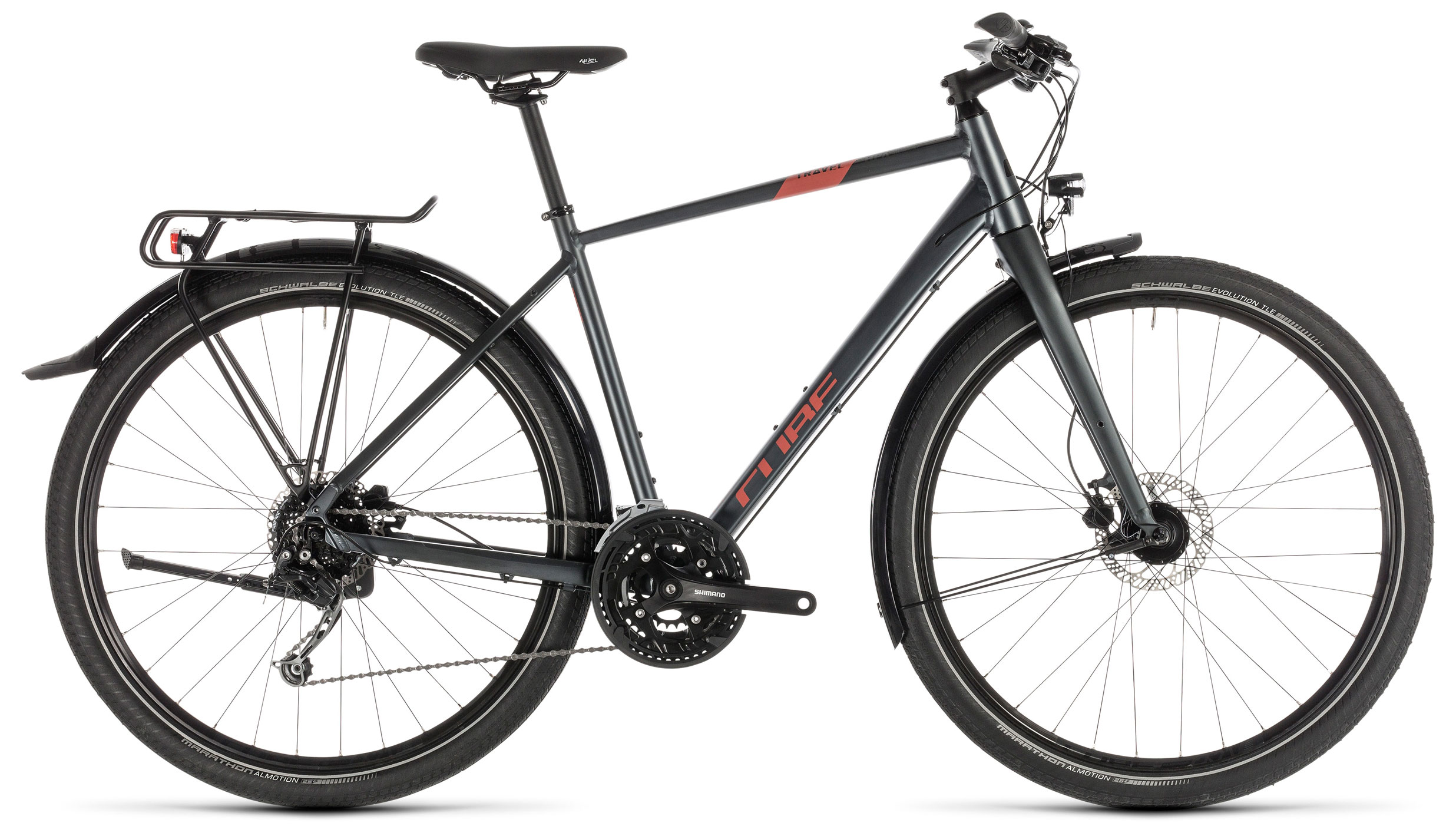 Бренд CUBE Модель Travel Год 2019 Серия Travel Материал рамы Алюминий (Alloy) Рама/описание Aluminium Superlite Trekking Sport 29 Taper Double Butted Тип вилки Жесткая (композит) Ход вилки, мм нет Блокировка амортизатора Нет Вилка/регулировки Aluminium Rigid Fork 29 Tapered Диаметр колес 29" Обода Cube EX21, 32H, Disc, Tubeless Ready Покрышки Schwalbe Marathon Almotion, Performance, Kevlar, 55x622 / Schwalbe Marathon Almotion, Performance, Kevlar, 55x622 Тормоза Дисковые гидравлические Грипсы Natural Fit Comfort Тормоз Tektro HD-M285, Hydr. Disc Brake 160mm / Tektro HD-M285, Hydr. Disc Brake 160mm Уровень оборудования Продвинутый Шифтеры Shimano SL-M2000, Rapidfire-Plus Переключатель передний Shimano FD-M370, Topswing, 31.8mm Переключатель задний Shimano Deore RD-M592, 9-Speed Кассета Shimano CS-HG200, 11-34T Цепь KMC X9 Шатуны Shimano FC-T3010, 48x36x26T, 175mm, BB-UN100, Chainguard Количество скоростей 27 Руль Cube Rise Trail Bar, 680mm Рулевая колонка FSA Orbit 1.5B ZS-1, Semi-Integrated, Top 1 18 Bottom 1 12 Вынос Cube Performance Stem Pro, 31.8mm Седло Selle Royal Ariel Подседельный штырь Cube Performance Post, 27.2mm Педали Cube PP MTB Втулка передняя Shimano DH-3D32, Hub Dynamo, QR Пол/возраст Мужской Вес 15.7 Втулка задняя Cube K68R -